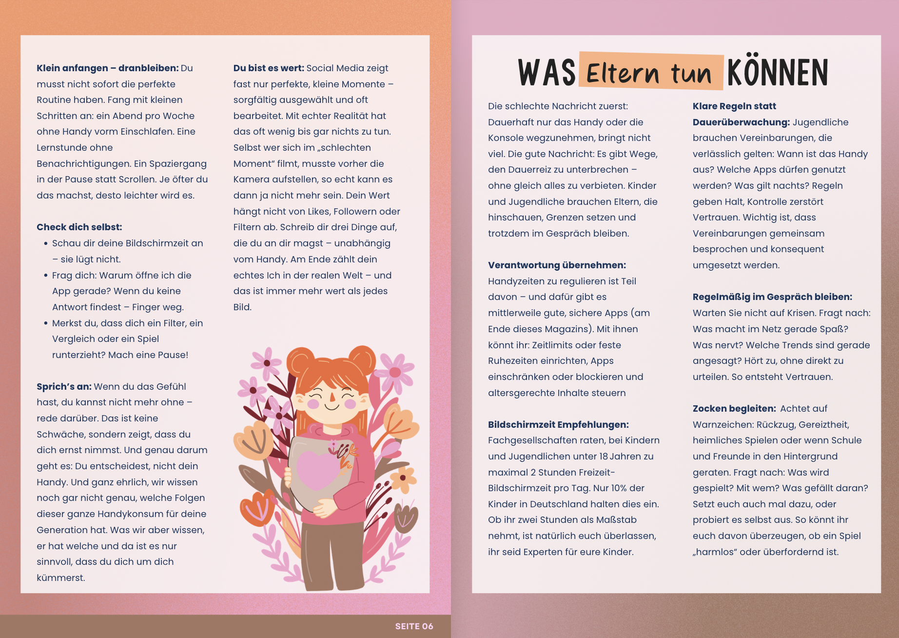 Neben Hintergrundwissen enthält das Magazin praktische Tipps für einen bewussteren Umgang mit Smartphone und Social Media sowie Impulse für Gespräche zwischen Jugendlichen, Eltern und Schule.